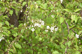 自生地周辺では,マメナシ以外にいろいろな花をたのしむことができました。このブラシのような花はウワミズザクラです。あまり「サクラ」らしくないですね。